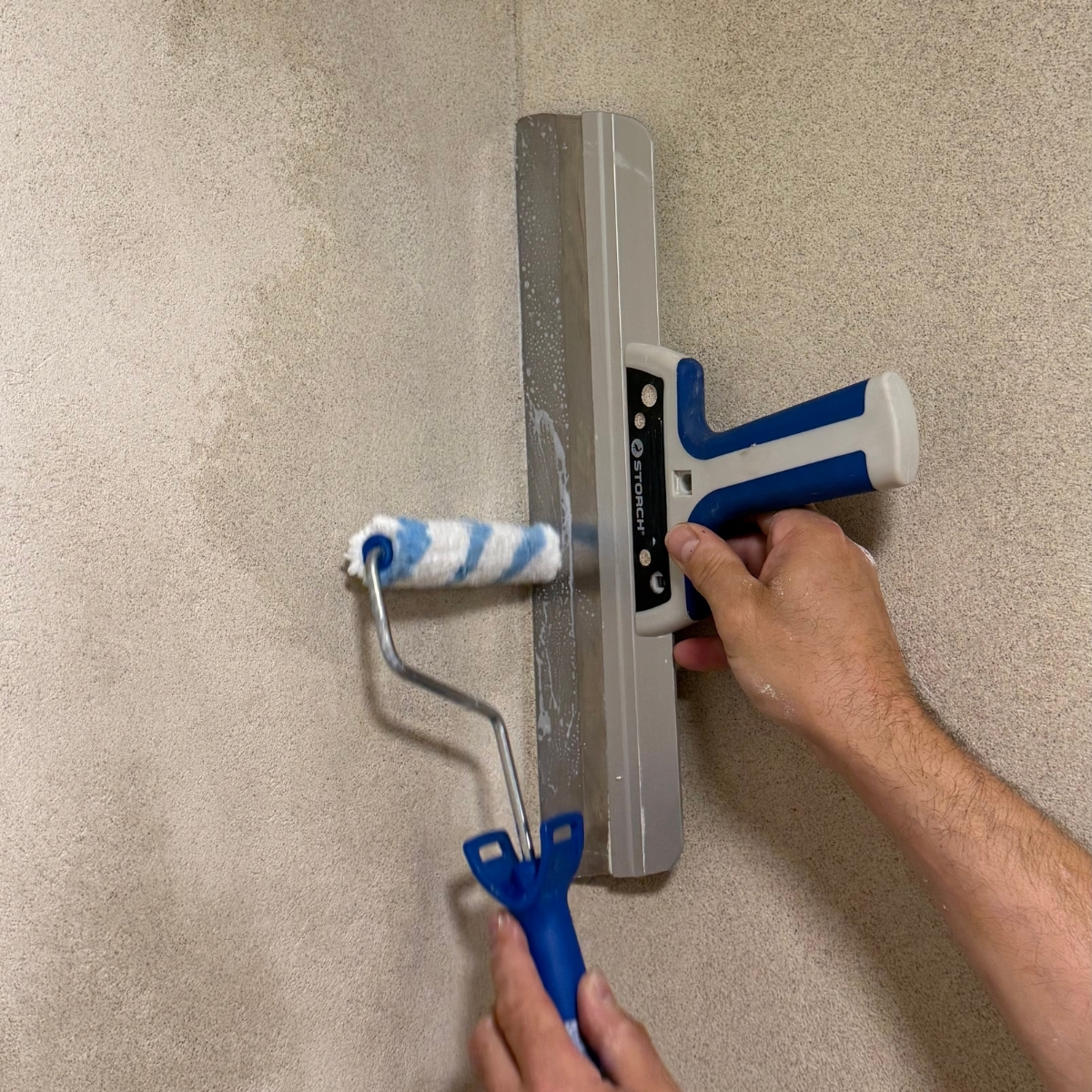 Some use brushes or dab into hard-to-reach corners — this almost always leads to visible dark patches. Use a smaller roller for those areas instead.