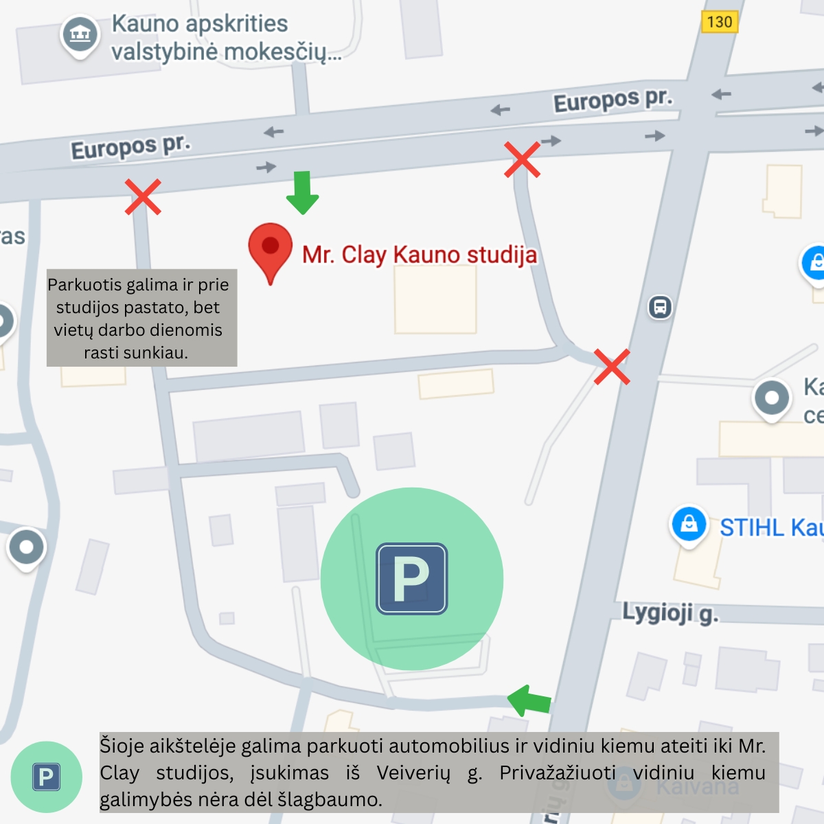 In your navigation, enter “Mr. Clay Kauno studija” and it will lead you directly here. Enter through the glass doors E72, 3rd floor.
