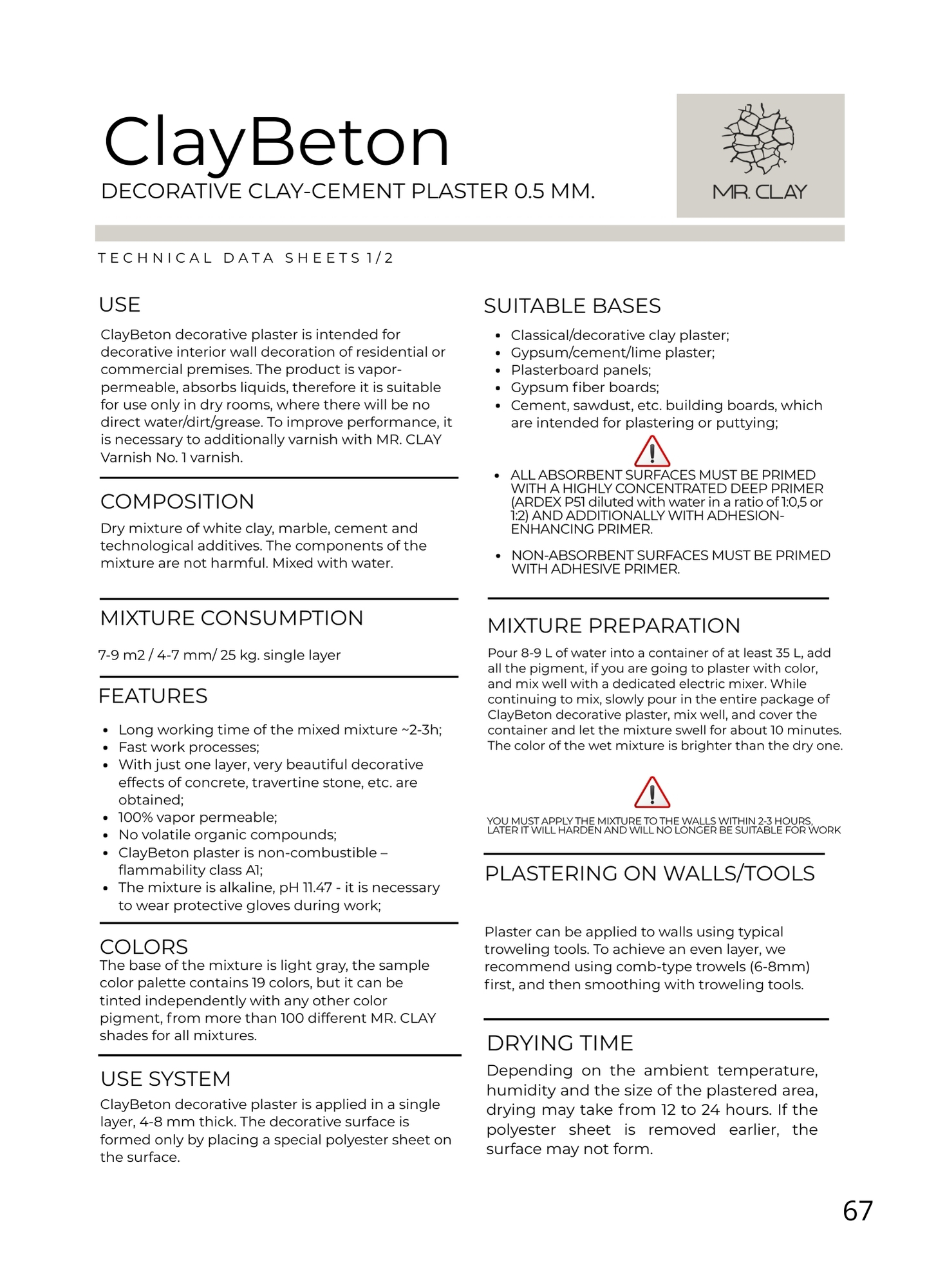Take advantage of the basket offer and pay less! The basket contains everything you need to start finishing your walls with ClayBeton clay-cement mixture.