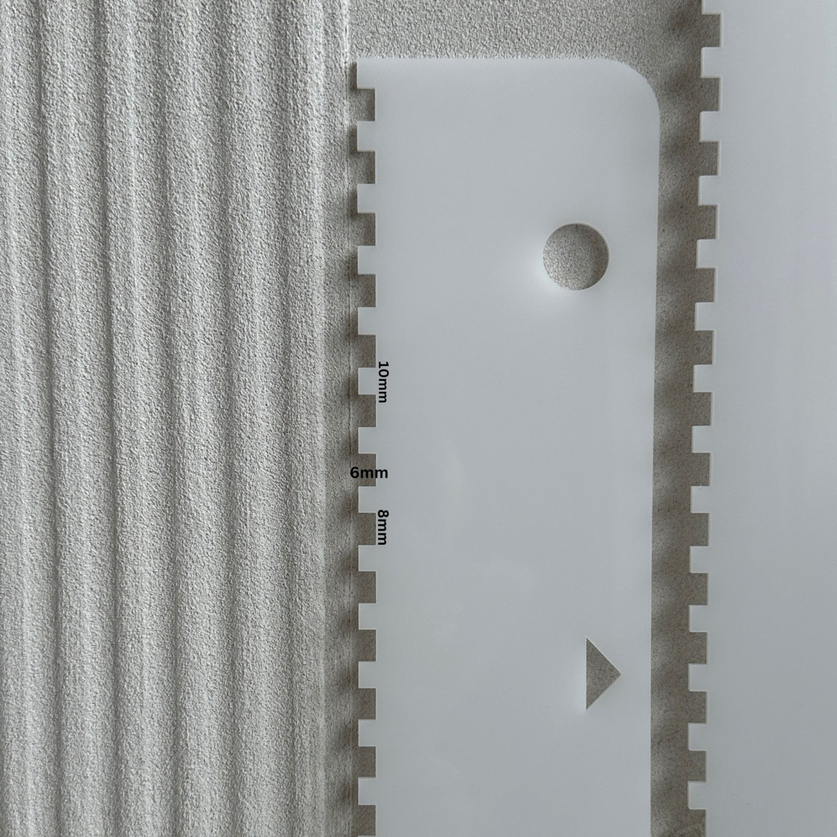 Iškilios linijos plotis - 8 mm. | tarpai tarp linijų - 10 mm. | linijų gylis - 6 mm.