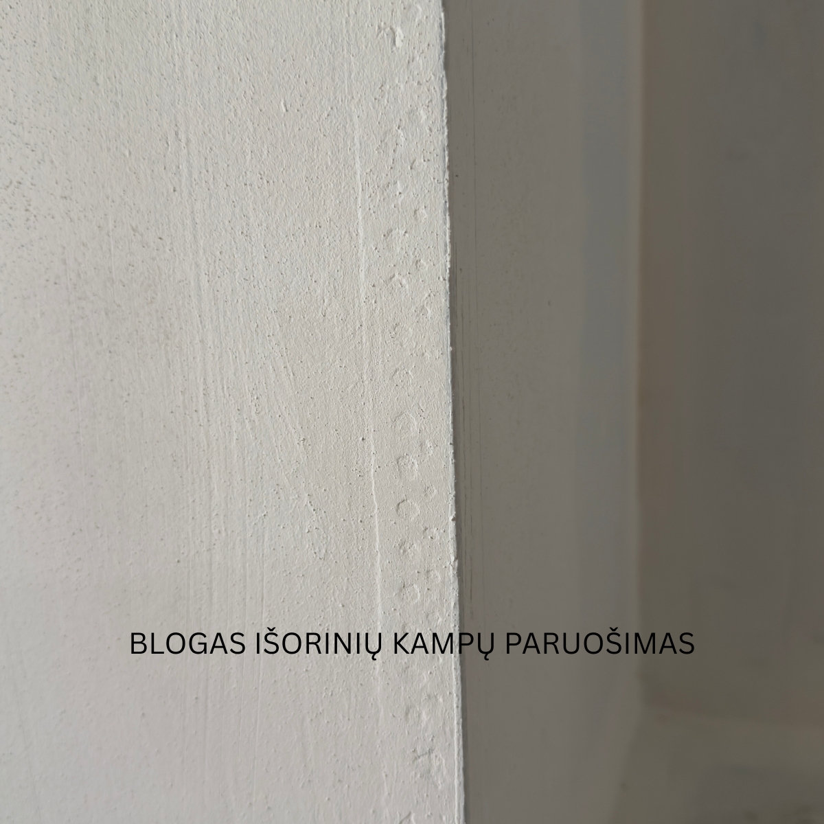 - Cementinį/kalkinį tinką gruntuokite kontaktiniu gruntu su kvarcinio smėlio užpildu, kruopščiai padenkite išorinius kampus.